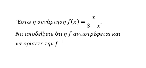 B1.3 Συνάρτηση 1-1 και Αντίστροφη #3 Gallery B1.3 Συνάρτηση 1-1 και Αντίστροφη #3 Γ' Λυκείου, Συναρτήσεις - Όριο - Συνέχεια B1.3 Συνάρτηση 1-1 και Αντίστροφη #3